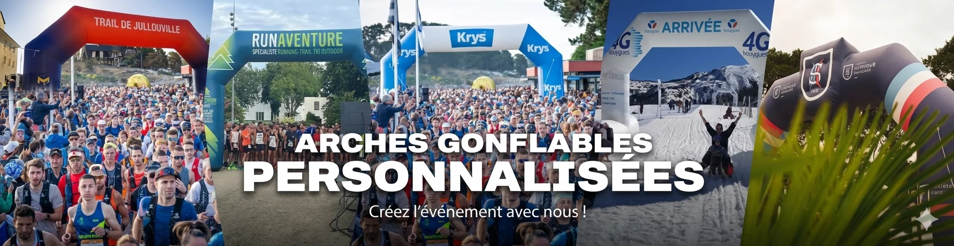 Que vous organisiez des trails en montagne, des marathons urbains, des salons professionnels, des festivals culturels ou des inaugurations institutionnelles, nos <strong>arches gonflables personnalisables</strong> matérialisent l’identité de votre événement avec une présence qui marque durablement les esprits.